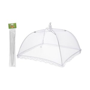 Kryt na potraviny skládací 30 cm silon + kov BÍ. rozměry: pr. 30 cm materiál: silon, kov barva: bílá Skládací kryt na potraviny ochrání potraviny i nápoje před hmyzem nebo domácími mazlíčky.