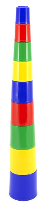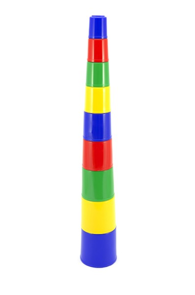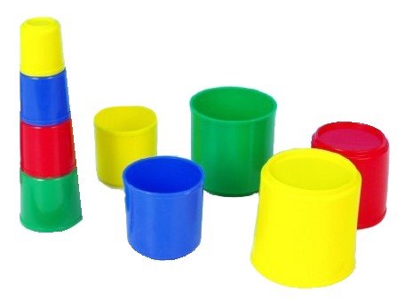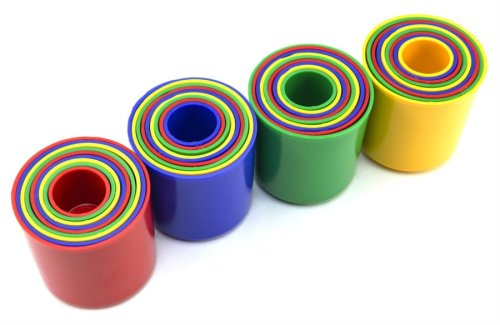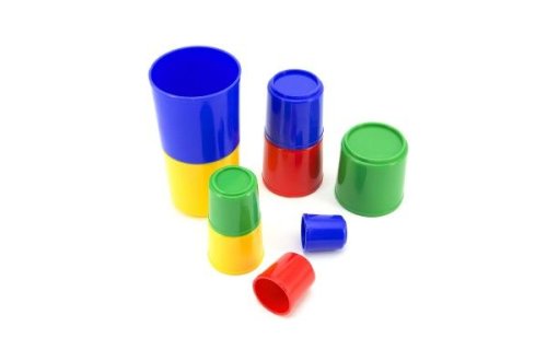 Kubus obsahuje devět kalíšků různých barev, které do sebe zapadají. Skládanku si děti mohou vzít i na písek nebo do vody.
