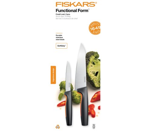 Kompaktní a lehký loupací nůž 1057544 s 8 cm dlouhou čepelí je ideální pro loupání a krájení malého ovoce a zeleniny. Snadno s ním oškrábete nové brambory či mrkev, zrovna tak i rozkrájíte švestky nebo nakrájíte malou cibuli. Středně velký univerzální nůž 1057535 se silnou 17 cm čepelí je ideální pro krájení masa, uzenin i zeleniny. Hmotnost: 0,171 kg. Původní FIS číslo 1014198.