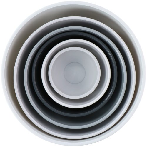 Tyto misky využijete pro všechny vaše kuchařské a pečicí úkoly. Od šlehání vajíčka přes šlehání smetany až po míchání těsta a míchání.6 mixovacích misek do sebe velikostí zapadá, takže je lze snadno a kompaktně skladovat. Design a bílé a šedé tóny znamenají, že se perfektně hodí do každé moderní kuchyně.Mixovací nádoby jsou vhodné do mikrovlnné trouby. Můžete je tedy použít i na rozpuštění másla či čokolády nebo na zahřátí. Po použití je vložte do myčky nádobí.Specifikace:Velikosti nádob: 0,25/0,6/1,15/2/3,35 a 5,25 litrů.Možno mýt v myčceVhodné do mikrovlnné trouby