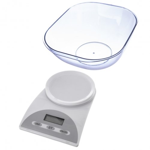 Digitální kuchyňská váha s LCD displejem má přehledné menu s hodnotami udávanými v kg, g, lb a oz a váživost až 5 kg .