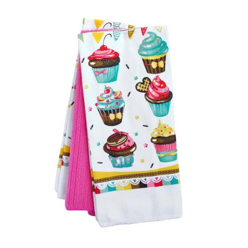 Krásné kuchyňské utěrky - sada 3 ks. Moderní dekor "dortíky". Užijte si při vaření spousty legrace s veselými a oblíbenými motivy. Materiál - 2 ks - mikrovlákno (80% polyester, 20% polyamid), 1 ks - 100% polyester. Rozměry - 38 x 64 cm.