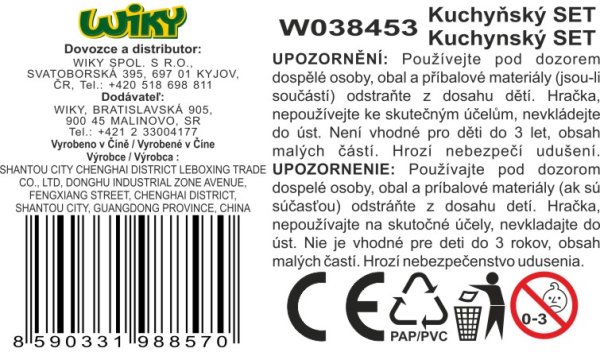 Kuchyňský set. Rozměry dřezu 19x13,5x6 cm. Dřez, odkapávač, 3 nože, brousítko nožů, krájecí prkénko, škrabka, rozkrojitelná mrkev, kukuřice, dýně.