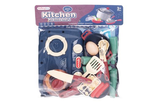 Kuchyňský set. Součástí vařič, nádobí a jídlo. Není na baterie, žádné efekty.