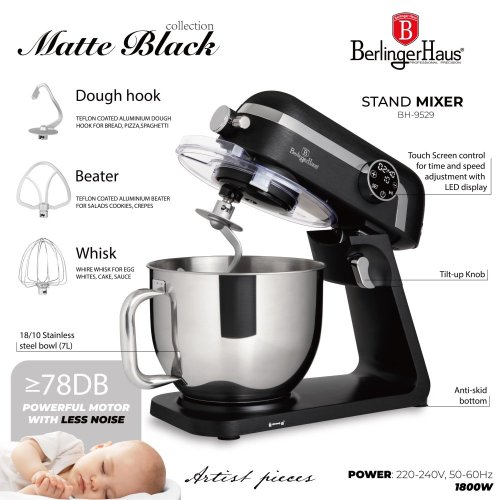 Kuchyňský robot Berlingerhaus BH/9529 z kolekce Matte Black je elegantní a praktický pomocník do každé moderní kuchyně. Tento výkonný robot vám umožní snadno a rychle připravit různé pokrmy díky široké škále funkcí a příslušenství. Planetární míchání pro důkladné promíchání. Dotykové ovládání s LED displejem. Tichý provoz díky speciální konstrukci. Nastavení času a rychlosti pomocí dotykového displeje.