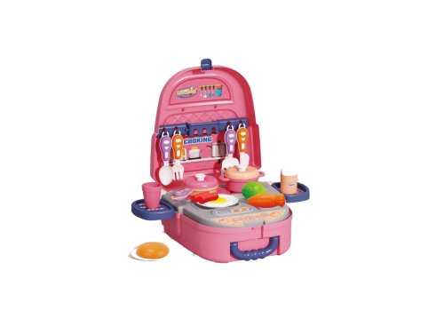 Kuchyňský set v praktickém balení, lehce sbalíš a dáš na záda jako batůžek. Set obsahuje 22 kusů kuchyňského příslušenství: příbory, hrnce, pokličky, imitace jídla a další příslušenství. Podporuje koordinovaný vývoj těla a mozku, pomáhá dítěti naučit se koordinovat oči, ruce a mozek při hraní.