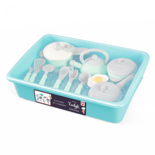 Velká kuchyňská sada ve které najdeš spoustu užitečných doplňků do kuchyně! Nemůže chybět například konvice, hrnec, pánvička, tlakový hrnec, naběračka a mnoho dalšího kuchyňského vybavení. Vše je navíc uloženono v praktickém boxu. Vyrobeno z plastu.