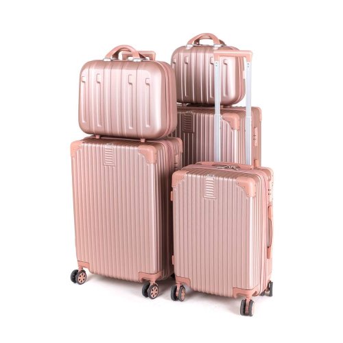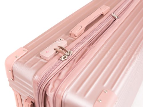 Cestovní skořepinový kufr na kolečkách ABS25, se zpevněnými rohy, velikosti M, ve zlatorůžové barvě, je vyrobený z kvalitního plastu ABS, který je odolný proti nárazu. Je opatřený 4 dvojitými kolečky otočnými o 360 stupňů, díky kterým je manipulace s kufrem velice snadná. Kufr má 3 plastová madla: boční a dvě horní, z nichž je jedno s teleskopickou rukojetí s pojistkou proti zasunutí a možností nastavitelné výšky ve více polohách. Kufr se uzavírá na zip a oba jezdce můžete spojit do kódového zámku TSA, který velmi uvítáte při náhodných kontrolách na letišti. Vnitřní část kufru má látkovou dělící přepážku s kapsou a křížové upínání pro lepší fixaci a uspořádání vašich věcí. Kufr je vybaven expanderem, díky kterému je možné po rozepnutí 1 zipu kufr rozšířit do hloubky o několik cm a objemově tak zvětšit prostor až o pětinu.