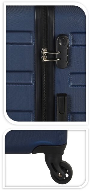• kompletní sada tří kufrů v různých velikostech pro různé příležitosti- odolná cestovní zavazadla se čtyřmi tichými kolečky a TSA bezpečnostním kódovým zámkem- materiál: tvrzený ABS plast- kvalitní, nepromokavý, pevný materiál s dobrou odolností proti poškrábání- teleskopická rukojeť- v horní i boční části také elastické madlo pro ruční přenášení- hlavní velká kapsa na dvojcestný zip se zámkem- bezpečnostní TSA zámek na číselný kód je nejlepším způsobem jak zajistit bezpečí vašeho zavazadla- vnitřní prostor kufru je vybaven elastickými pásy k připevnění obsahu- samozřejmostí jsou 4 kolečka otočná o 360°- skořepinový kufr z tvrzeného ABS plastu výborně odolává případným pádům na zem nebo větší zátěži- malý příruční kufr odpovídá definici příručního zavazadla a lze si jej vzít na palubu letadla- sada obsahuje 3 různě velké kufry:- velký kufr: 50 x 30 x 77 cm- střední kufr: 46 x 26 x 67 cm- příruční: 36 x 26 x 67 cm- barva: modrá- značka: XQMAX