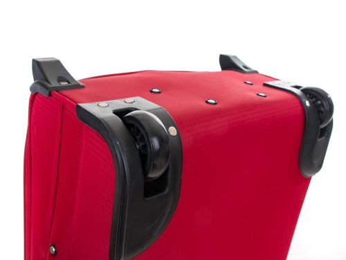 Cestovní textilní kufr TEX15, velikosti S, v červené barvě,, je vyrobený z textilie, což ocení především cestovatelé, pro které je důležitá nízká hmotnost zavazadla. Je opatřený 2 kolečky pro snadné přemístění zavazadla. Kufr má 2 textilní madla (boční a horní) a 1 plastové s teleskopickou rukojetí s pojistkou proti zasunutí a možností nastavitelné výšky ve více polohách. Díky vůli textilie, je prostor kufru možné drobně přizpůsobit. Ve vnitřním prostoru naleznete jistící popruhy a vnitřní kapsu pro lepší fixaci a uspořádání vašich věcí. Dále má dvě vnější kapsy pro umístění drobnějších věcí. Kufr se uzavírá na zip.