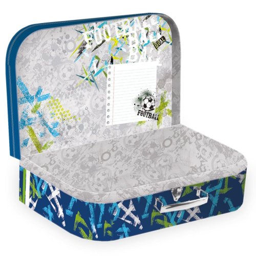 Papírový škoní kufřík, šířka 35 cm, kovová rukojeť. Stylový školní kufřík „Goal Time“ s dynamickým motivem fotbalového zápasu je ideální na výtvarné potřeby, hračky nebo osobní poklady. Skvělý doplněk do školy, školky nebo na cesty. Rozměry výrobku 35 x 23 x 10 cm Vhodné pro děti od 3 let