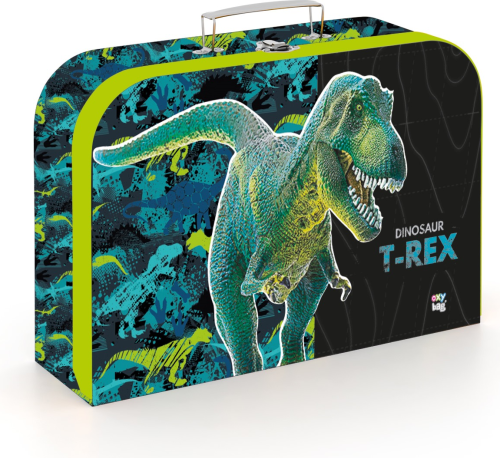 Lamino kufřík na výtvarnou výchovu. Do kufříku se vejde formát A4. Materiál: papír, lepenka, kovový zámeček, kovové nýty.