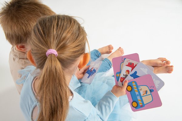 Rozložte obrázky (jeden z dvojice) na stůl. Vyprávějte krátký příběh o obrázku, které si vaše dítě vybere. Vymýšlejte stále obtížnější hádanky, mluvte o tom, jak dopravní prostředky vypadají, k čemu se používají, kde se pohybují. Jestli jezdí, plavou nebo létají?