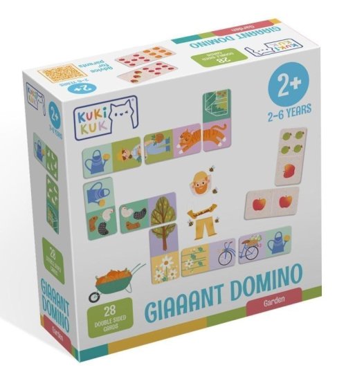 Na zahradě je spousta věcí, které mohou děti objevovat! Zábavné skládání kartiček trénuje jemnou motoriku i logické myšlení batolat. Na lícové straně jsou ke složení obrázky zvířat, zahradníků a jejich náčiní. Na rubové straně naleznete puntíky vytvořené z různých druhů ovoce – ideální pro hru domino. 28 velkých pevných dílků 12 x 6 cm. <br> <br> The fun assembling of cards fosters fine motor skills and logical thinking of toddlers. Use the double-sided printing on the cards, which are suitable for older children, to expand the game variations.