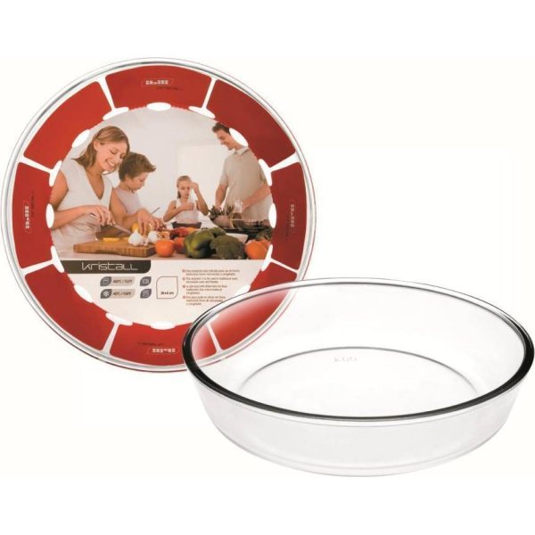 Kulatá skleněná mísa určená pro všechny druhy trub, včetně té mikrovlnné. Mísa s průměrem 26cm a výškou 6cm.