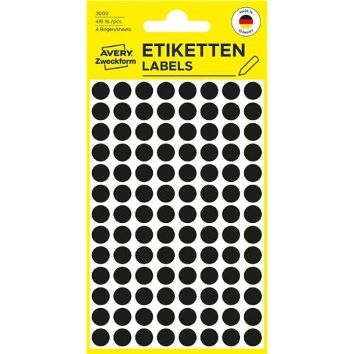 Kulaté etikety Avery, 8 mm, černé