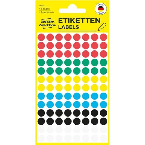 Kulaté etikety Avery, 8 mm, mix barev - mix variant či barev