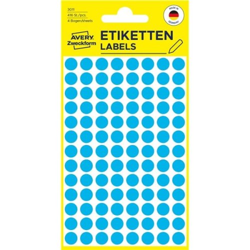Kulaté značkovací etikety modré barvy Etikety jsou dostupné ve třech velikostech a různých barvách Vhodné pro ruční popis Barva: modrá Rozměry etiket, štítku: průměr 8 mm Počet etiket, štítků na archu: …