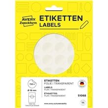 Kulaté uzavírací etikety Avery, 18 mm, čiré, 720ks