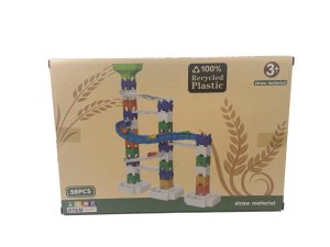 Sestav si vlastní kuličkovou dráhu z 58 dílků! Výrobek podporuje kreativitu a představivost. Vyrobeno z přírodních materiálů, 100% recyklovaný plast.