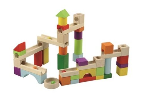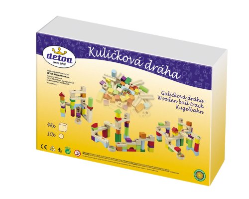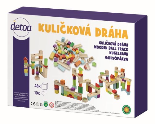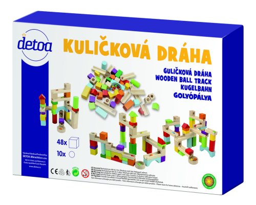 Dřevěná dráha se skládá z dřevěných dílků různých tvarů, barev a velikostí. Základní velikost krychle je 27 mm a průměr kuličky je 13 mm. Stavebnice rozvíjí motoriku rukou, kreativitu, fantazii a logické myšlení dětí.