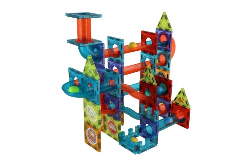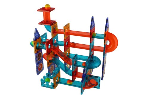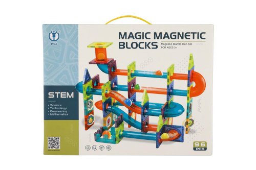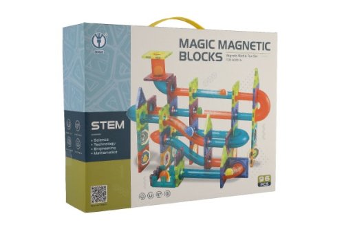 Kuličková dráha umožňuje sledovat cestu kuličky a její rychlost z horní části až dolů. Která kulička bude rychlejší a které sestavení dráhy bude zajímavější? Sestavte magnetickou kuličkovou dráhu dle návodu nebo podle vlastní fantazie a zábava může začít. Polepte samolepkami díly k tomu určené, arch se samolepkami je součástí balení. Balení obsahuje celkem 96 ks.
