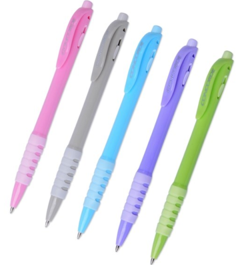 plastové kuličkové pero v pastelové barvě gumový úchop stiskací mechanismus délka propisky: cca 14 cm barva náplně: modrá