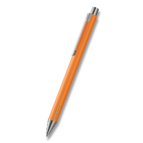 Kuličkové pero LAMY econ Apricot má tělo z nerezové oceli s matně oranžovou povrchovou úpravou.