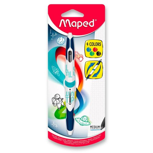 Multifunkční oboustranné kuličkové pero Maped Twin Tip 4 Classic s moderním designem má stiskací mechanismus, který je umístěný po straně.