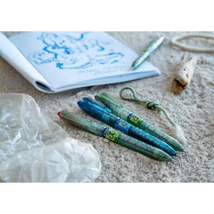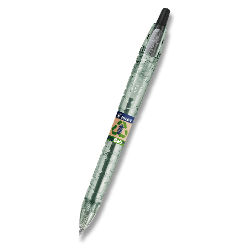 Kuličkové pero Pilot B2P Ecoball se stiskacím mechanismem, vyrobené z 86 % z recyklovaných plastových lahví s podílem min. 2,5 % recyklovaného oceánského plastu.