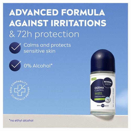 Sháníte účinný a šetrný antiperspirant, který si poradí i s velmi citlivou pokožkou? Inovativní složení s pečujícím vitamínem E chrání před podrážděním a kyselina hyaluronová hydratuje pokožku. Vyzkoušejte kuličkový antiperspirant pro muže Derma Control Sensitive s ochranou před potem pro dlouhotrvající pocit svěžesti.