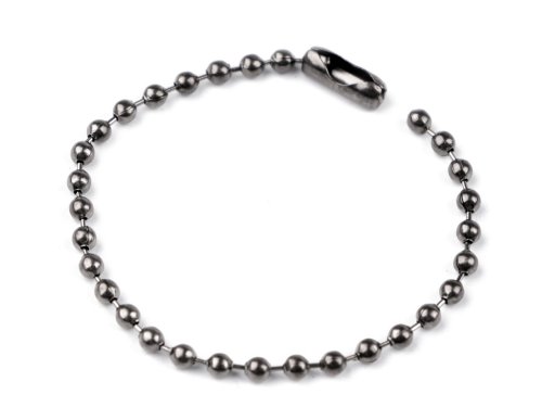 Kuličkový řetízek je vhodný k připevnění přívěsků na kabelky, tašky či jako poutko na kabáty, mikiny, bundy apod. Využijete ho také jako visačku na oděvy tam, kde nelze použít špendlík kvůli poškození oděvu. Řetízek připevníte jednoduše zaháknutím kuličky do očka. Kuličky mají průměr 2 mm. [Řetízky s barvou nikl jsou dlouhé 10 cm. Řetízky s barvou staromosaz jsou dlouhé 9,5 cm.]