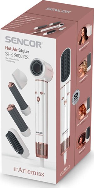 Horkovzdušná kulma Sencor SHS 9100RS Artemiss přináší profesionální péči o vlasy v elegantním designu a s technologií nové generace. Je vybavena moderním bezkartáčovým BLDC motorem, který se vyznačuje extrémně dlouhou životností, vysokou účinností a tichým provozem. Díky výkonu až 110 000 otáček za minutu a proudění vzduchu rychlostí až 75 km/h nabízí rychlé a efektivní sušení i styling. Kulmofén disponuje třemi úrovněmi proudění vzduchu pro přizpůsobení sušení typu vlasů – jemné, běžné a intenzivní. Čtyři teplotní režimy, včetně funkce studeného vzduchu, umožňují šetrnou péči a zafixování účesu. Balení obsahuje pět praktických nástavců: magnetickou hlavici pro sušení, dva nástavce pro vytváření loken různých velikostí, objemový kartáč a nástavec pro cílené proudění vzduchu. Lehce odnímatelný filtr usnadňuje čištění přístroje. Při příkonu 1300 W nabízí kulma rozsah teplot od 20 do 72 °C, hlučnost 75 dB a profesionální výsledky i při každodenním používání. Tato kulma je ideální volbou pro každého, kdo hledá rychlý, přesný a šetrný styling.
