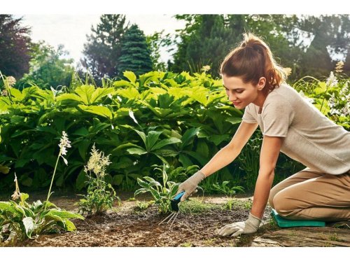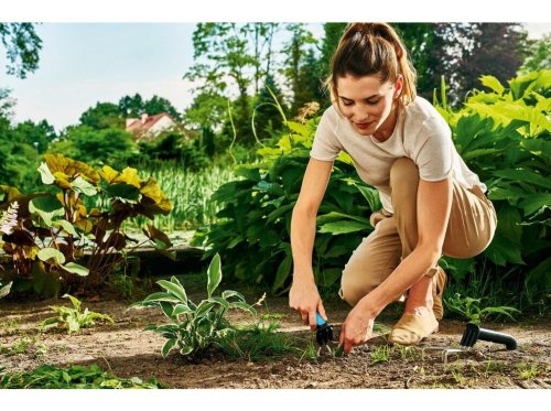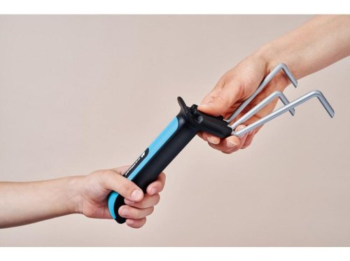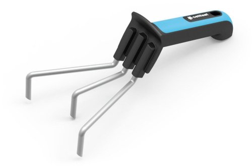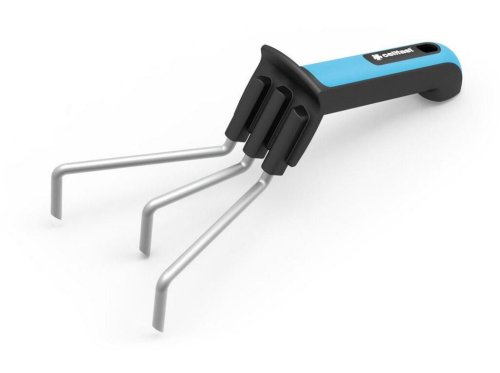 Ruční kultivátor s ergonomicky tvarovanou rukojetí a opěrkou place pro snazší práci, pomáhá k odstranění plevele či k přípravě zeminy pro setí semen.