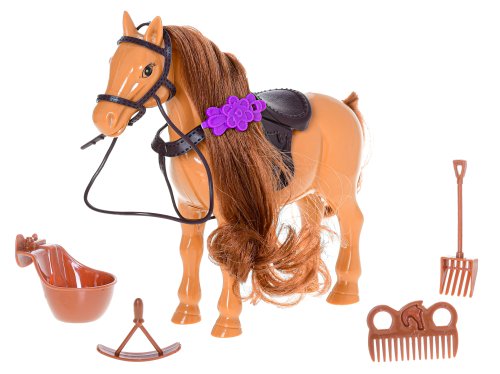 Kůň 17 cm s doplňky - mix barev (světle hnědá, tmavě hnědá)