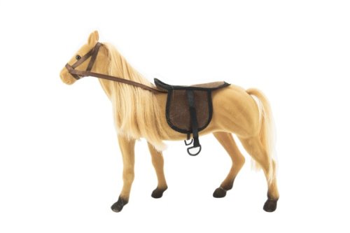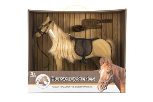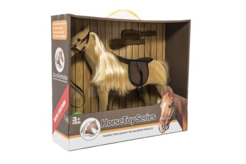 Kůň se sedlem a ohlávkou pro všechny obdivovatele a milovníky koní. Kůň je 38 cm velký, plastový, s povrchovou úpravou fliška. Balení obsahuje hřebínky na česání hřívy.