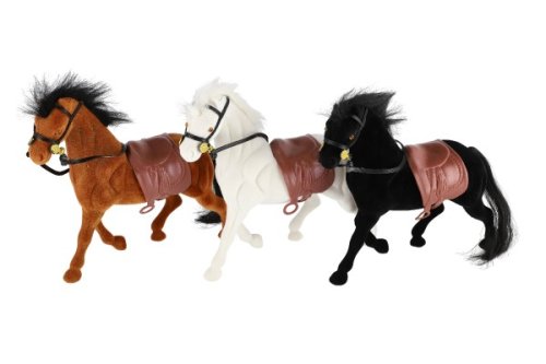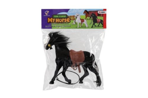 Kůň se sedlem a ohlávkou pro všechny obdivovatele a milovníky koní. Kůň je 22 cm velký, plastový, s povrchovou úpravou fliška. Figurky využijete například při hraní na vaší farmě. Rozměry balení 21 x 25 x 6 cm. Vhodné pro děti od 3 let.