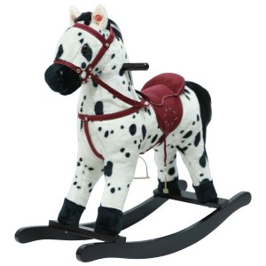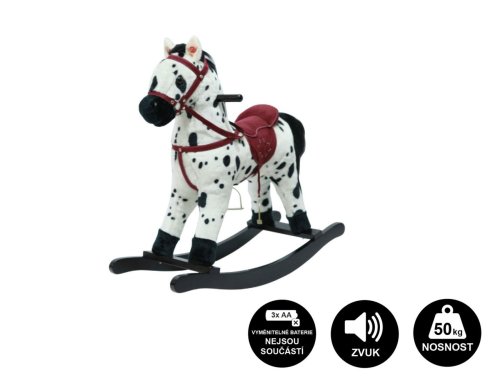 Kůň houpací bíločerný plyš na baterie 71cm se zvukem a pohybem nosnost 50kg