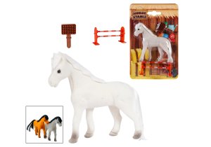 Kůň parkurový. Rozměry 11x10 cm. Součástí kůň, kartáč, překážka. 2 varianty - bílý, hnědý.