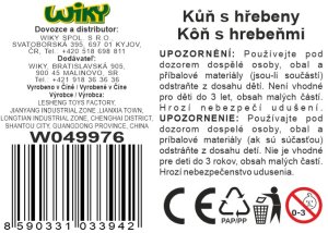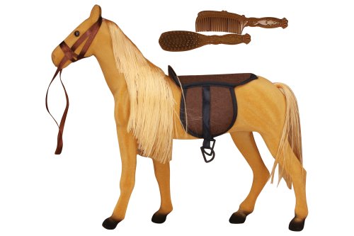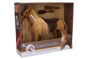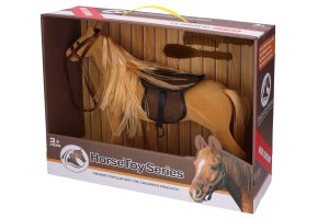 Kůň světlý. Velikost 35cm. Obalení obsahuje koně se sedlem a dva hřebeny.