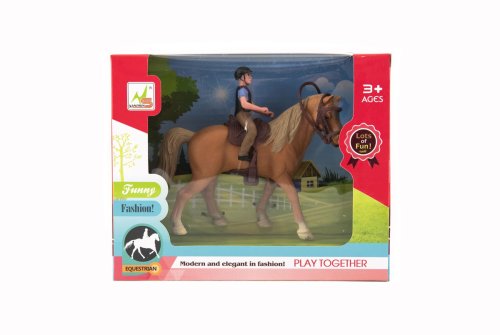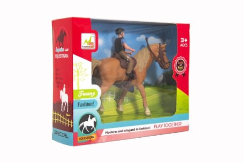 Všechny malé milovníky koní potěší žokej s koníkem s uzdou a sedlem. Žokej musí mít jezdecké oblečení a helmu. Hříva koně není česací. Vyrobeno z kvalitních a odolných materiálů. Rozměry balení 20 x 16 x 5,5 cm. Vhodné pro děti od 3 let.