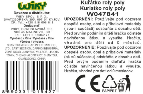 Kuřátko roly poly. Přesné rozměry 8x5x5 cm.