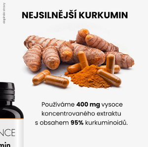 Kurkumin ADVANCE je unikátní doplněk stravy. Obsahuje vysoce koncentrovaný extrakt z kurkumy s nejvyšším obsahem kurkuminu. Kurkumin ADVANCE obsahuje 400 mg vysoce koncentrovaného extraktu z kurkumy s obsahem 95% kurkuminoidů. Díky tomu se jedná o produkt s nejvyšším obsahem kukuminu v 1 kapsli na trhu v ČR. Dále je v kapsli obsažen i piperin pro ještě lepší vstřebatelnost kurkuminu.