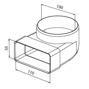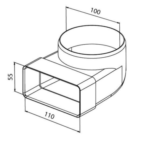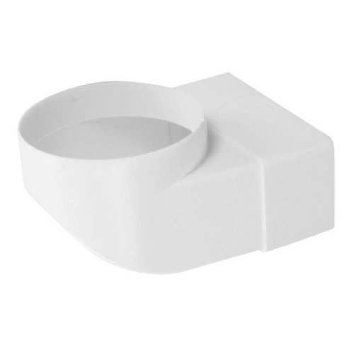 je vyroben z kvalitních plastů PVC a ASA, materiál PVC je odolný až do teploty 80°C slouží k napojení kulatého a plochého kanálu při potřebě ohybu v 90°