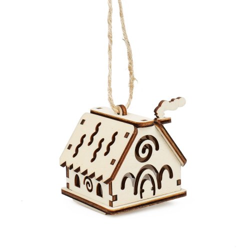 Pěkný malý 3D dřevěný domeček o rozměrech 5x5x5 cm upoutá vaši pozornost dýmícím komínem na boku střechy. Domeček má díky svým vyřezaným vlnkám a vrtulkám dívčí charakter připomínající cukrovou věžičku pro panenku. I okna a dveře mají typický oblý charakter hradu či věže, který známe z pohádek o princeznách. Domeček slouží jako dřevěná dekorace na zavěsení anebo na položení na poličku či stůl. Dodává se už postavený, tak jak ho vidíte na obrázku. Součástí je i LED svíčka, ve které je vyměnitelná 3V baterie. Hlavní vlastnosti: dekorace i na zavěšení s motivy vlnek a vrtuleks LED svíčkou uvnitřvyrobeno z 3 mm topolového dřeva