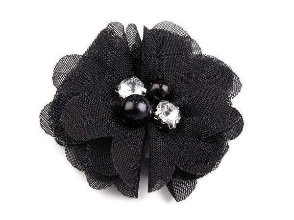 Textilní květ působí jemně a romanticky. V jeho středu jsou našité plastové korálky a broušené kamínky, které se efektně třpytí. Nedoporučujeme prát, aby zůstala zachována původní kvalita výrobku. Použití: Květ můžete našít jako ozdobu na společenské šaty, halenky, trička nebo svetry. Je vhodný i na zdobení klobouků, čepic a čelenek do vlasů. Můžete ho také pomocí lepidla přilepit na brožový můstek a vytvořit zajímavý šperk. [U bílé barvy se může lišit barva kovu (platina, stříbrná).]