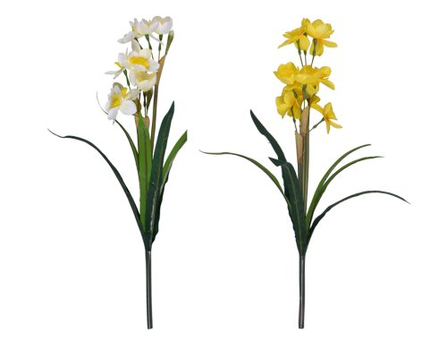 Umělá květina imitující narcis. V kytičce s 8 květy. Vhodná k dekorování samostatně nebo do vazeb. Vhodná pro sezónu: jaro. Velikost: 47 cm. Barva: mix barev žluto-žlutá a bílo-žlutá.