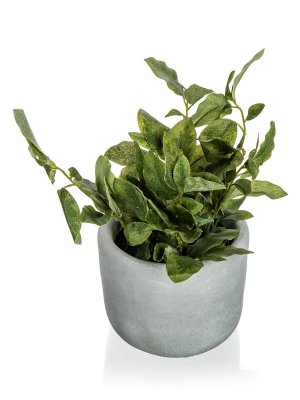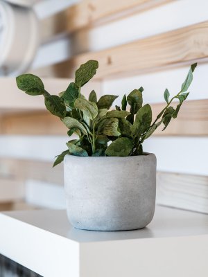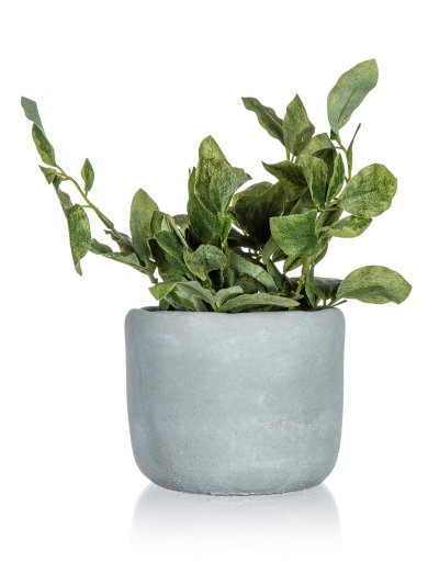 Zelená květina v betonovém květináči 18 x 20 cm, je umělá květina, která slouží jako náhrada živých rostlin a skvěle se hodí pro dekorování bytových prostor.
