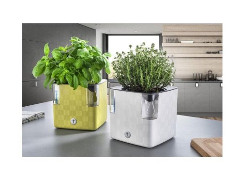 Plastový obal na květník v moderním designu se speciálním Aqua systémem. Je vhodný pro květník o průměru 10 - 12 cm. Není třeba žádná montáž, truhlík je připraven k používání. Šířka: 14 cm, výška: 14 cm, hloubka: 14 cm.