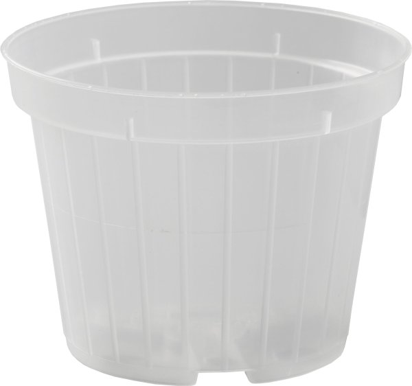 Průhledný tenkostěnný kontejner vhodný především pro pěstování orchidejí. Díky mléčné průhledné barvě se ke kořenům rostliny dostává dostatek slunečního světla, což jejímu pěstování prospívá.